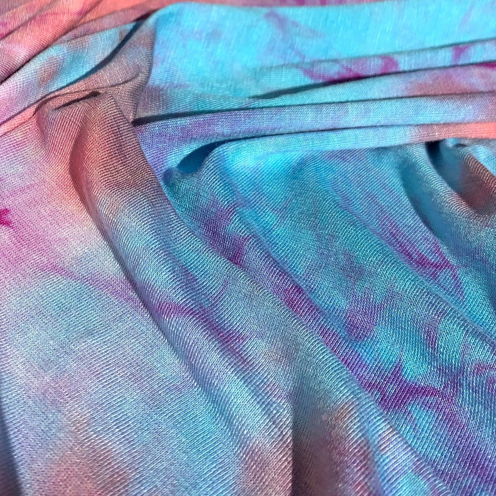 Bamboo Spandex Coral/Fuchsia Tie Dye Lycra Jersey Knit Fabric By the Yard 60""