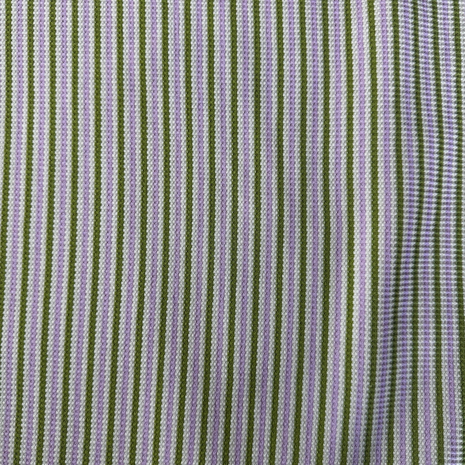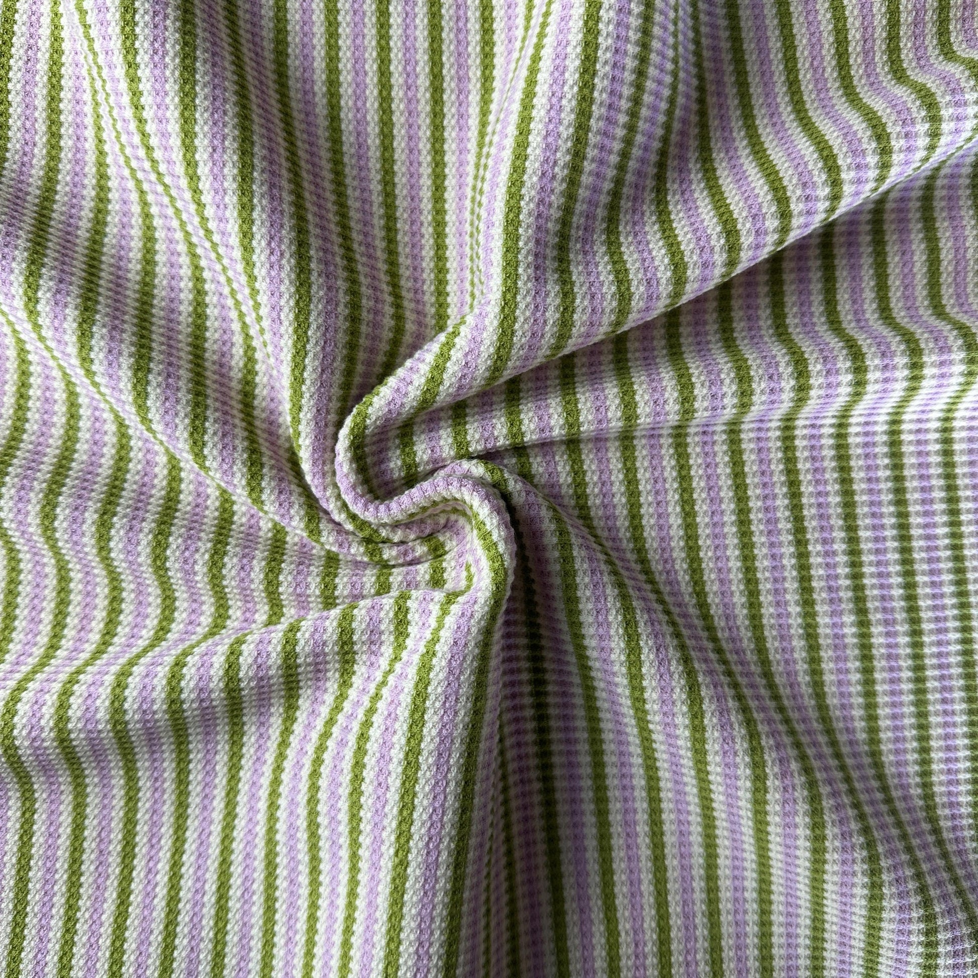 Cotton Striped Baby Thermal Fabric – Green, Purple, White 9 oz | Soft Waffle Knit 5% Spandex by the Yard